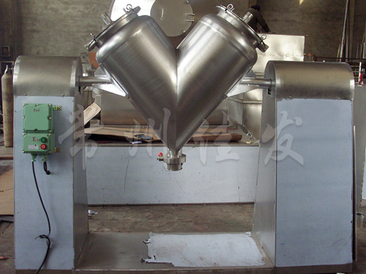 This machine uses mechanical transmission to make the materials inside the asymmetric V-shaped cylinder undergo reciprocating flipping, achieving the goal of uniform mixing.