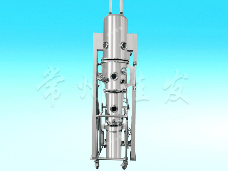 The powder particles of the material are in a circular fluidized state in the raw material container (fluidized bed), preheated and mixed by purified heated air, and the adhesive solution is atomized and sprayed, causing several particles to aggregate into agglomerates containing the adhesive.