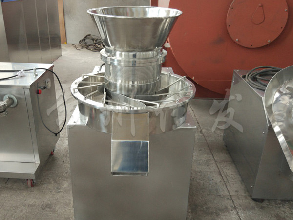 This machine uses a set of rotating grinding knives to inject the wet material made from the previous process into the stainless steel sieve barrel of the ring grinding knife, thereby producing cylindrical wet particles for shot blasting in the next process. This device can obtain particles of different sizes by replacing the stainless steel sieve cylinder.